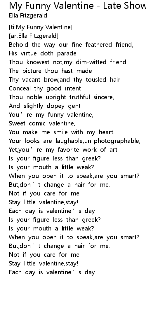 Ella Fitzgerald My funny valentine (lyrics), Musica legendada da maravilhosa Ella Fitzgerald! Enjoy :) **Unphotographable** . We Have got 15 pix about Funny Valentine Lyrics images, photos, pictures, backgrounds, and more. In such page, we additionally have number of images out there. Such as png, jpg, animated gifs, pic art, symbol, blackandwhite, images, etc.